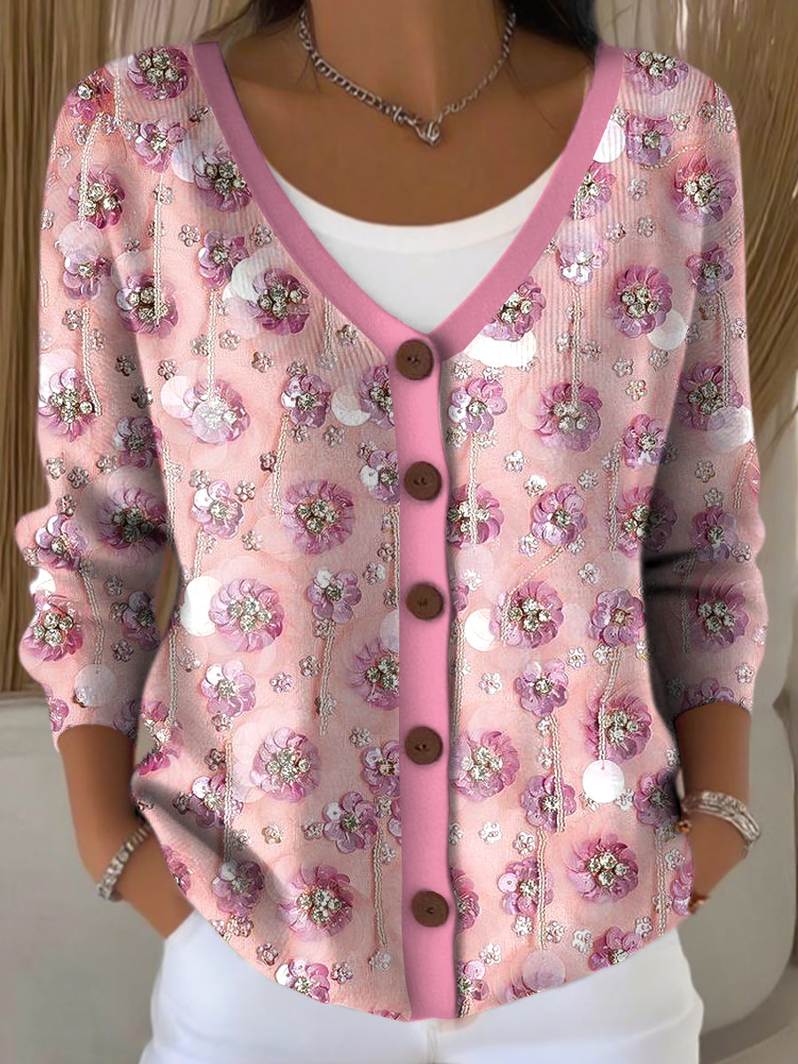 Dámské vinobranie potahované květinové v-neck pletené vesty
