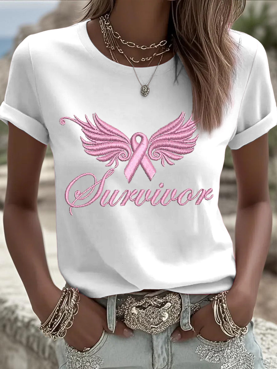 Dámské vintage růžové křídla stuha příležitostné tričko