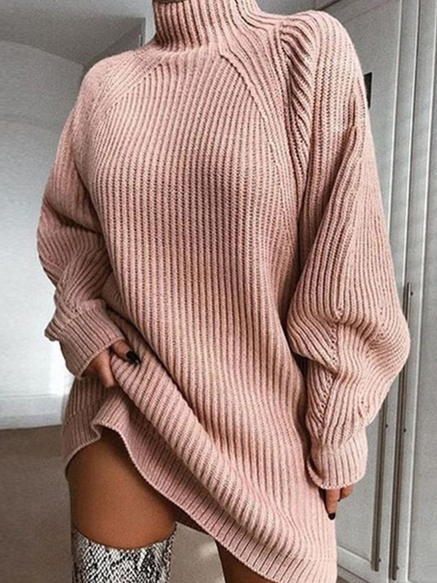 Dámské vintage středně dlouhý svetr šaty s polovinavysoké krku