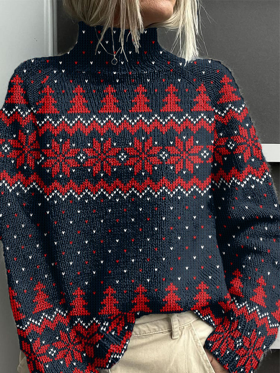 Dámské vintage vánoční geometrické umění vysokého kakla svetr