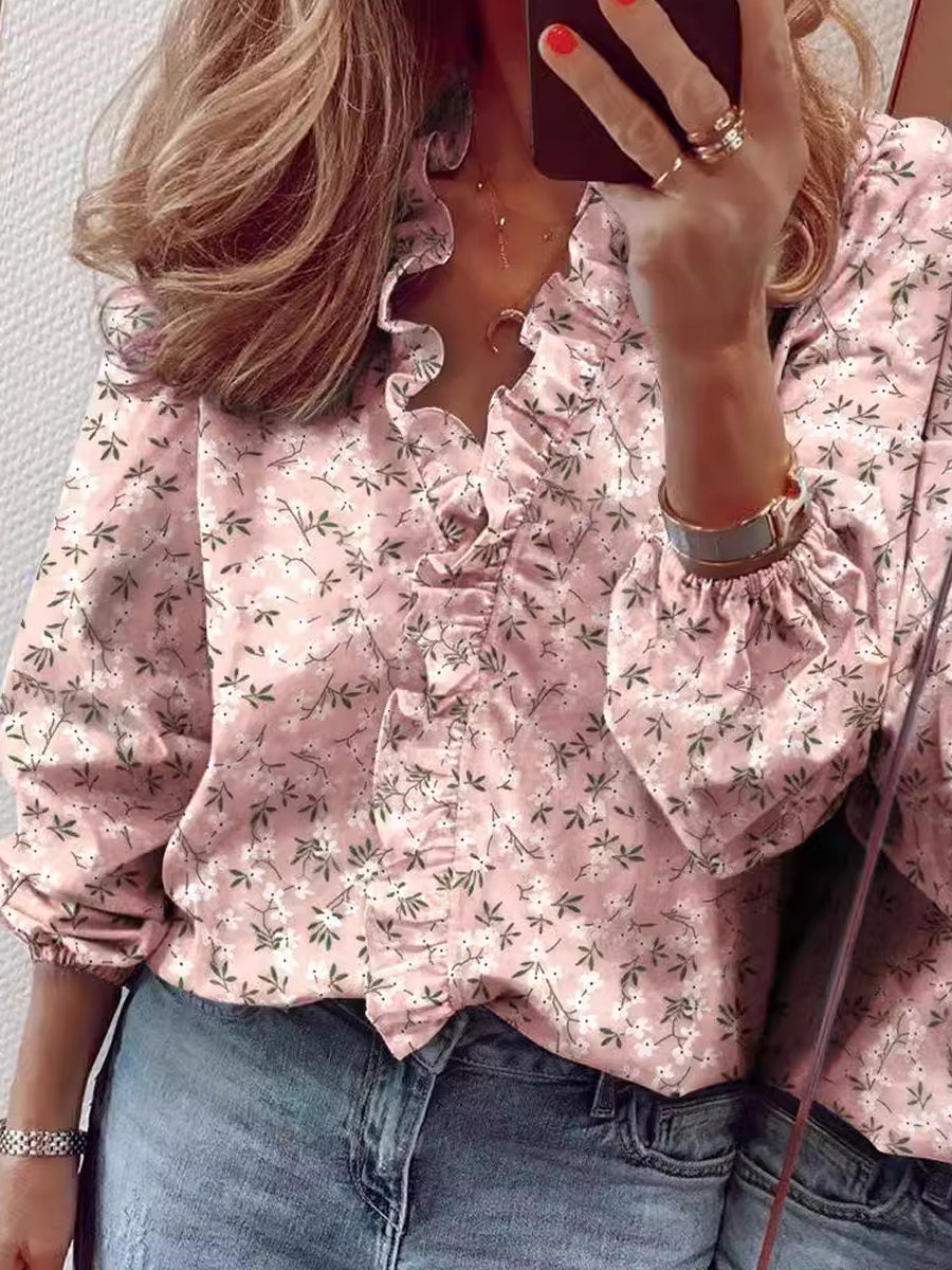 Dámy elegantní vyčerpaná květinová blůza v krku
