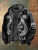 Men bold viking dragon & knotwork print fleecelined zip jacket