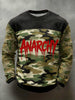 Mens retro punk band the clash camo print casual waffle longsleeve top