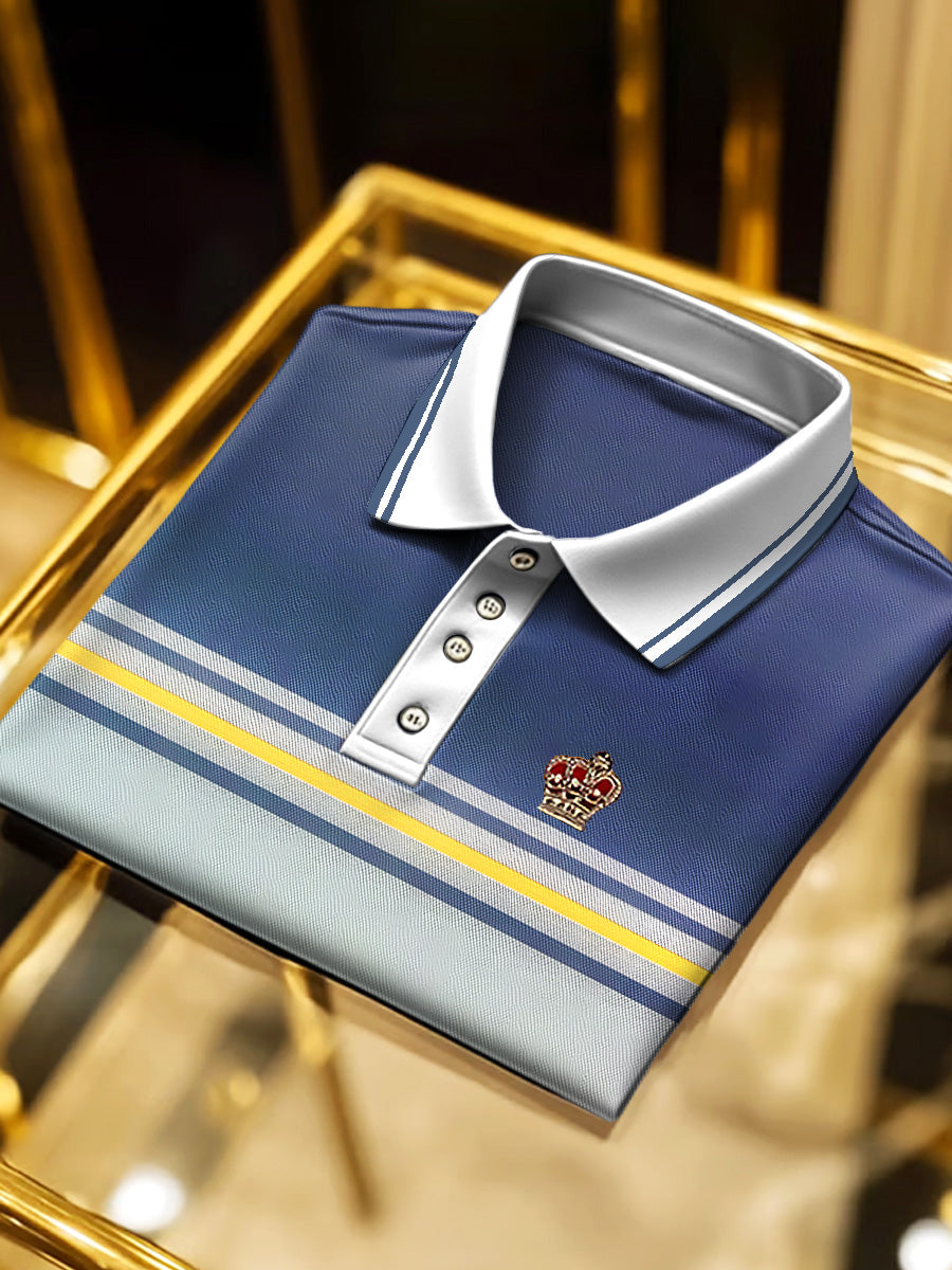 Mužská tmavě modrá pruhovaná příležitostná pólová košile