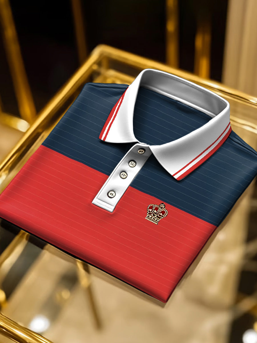 Pánské červené a modré barevné blokované vintage polo košile
