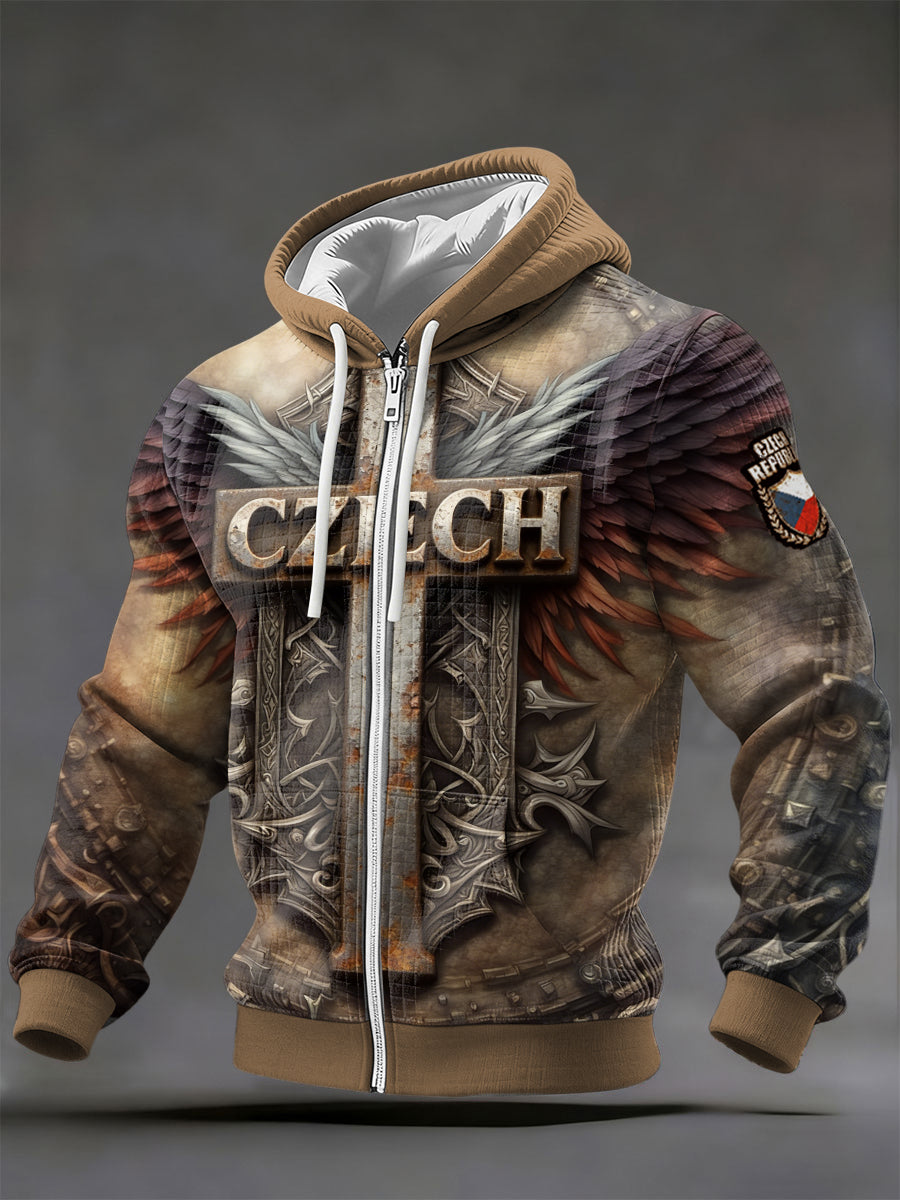 Pánské české kříže křížové kříže tisk vintage kontrola bavlněné mikiny bunda