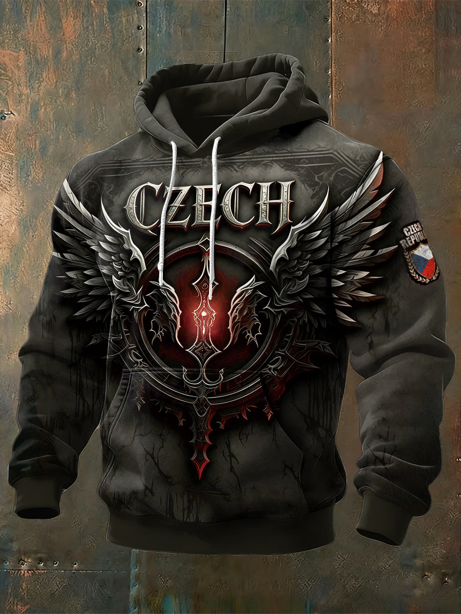 Pánské české křížové křížové křížové tlače vintage mikina s kapucinou