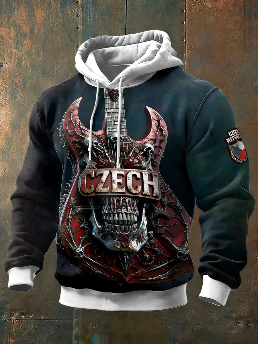 Pánské české nástroje tisk tmavě modrá vintage mikina s kapucnou