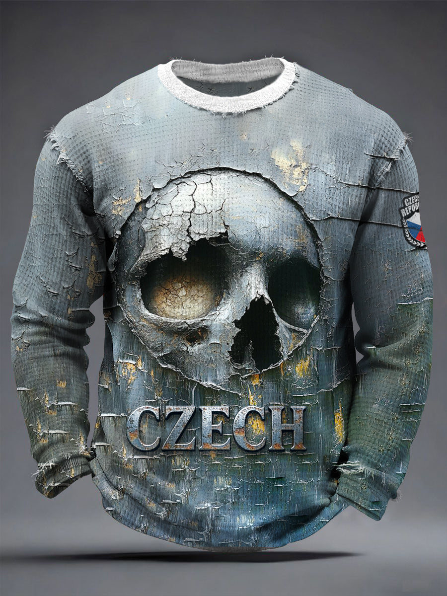 Pánské české tísňové lebky vytisknout tričko s dlouhým rukávem