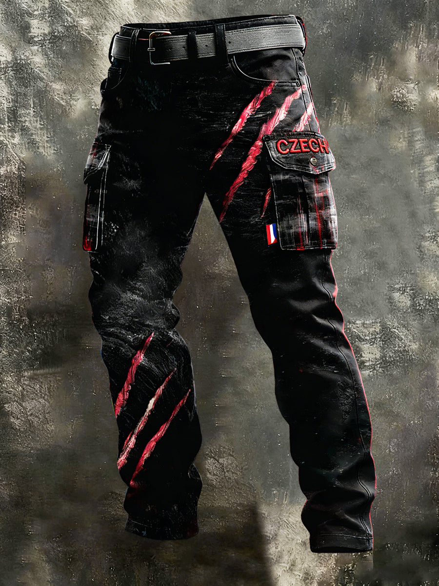 Pánské české vlajky graffiti tisk pracovní kalhoty