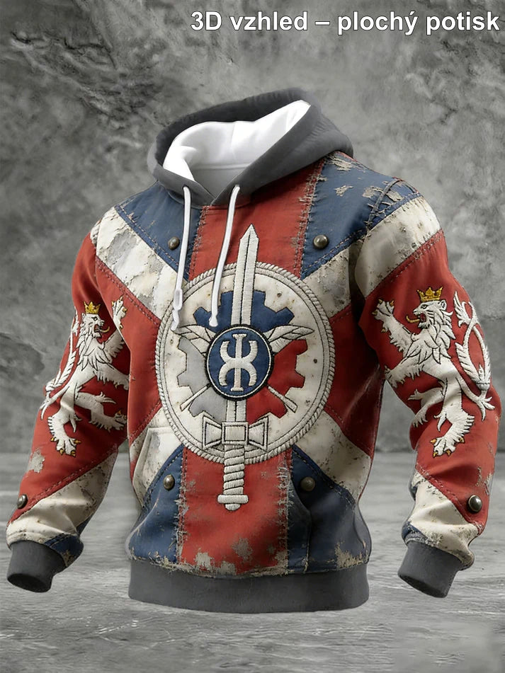 Pánské české vlajky patchwork print vintage kontrola bavlněné mikiny