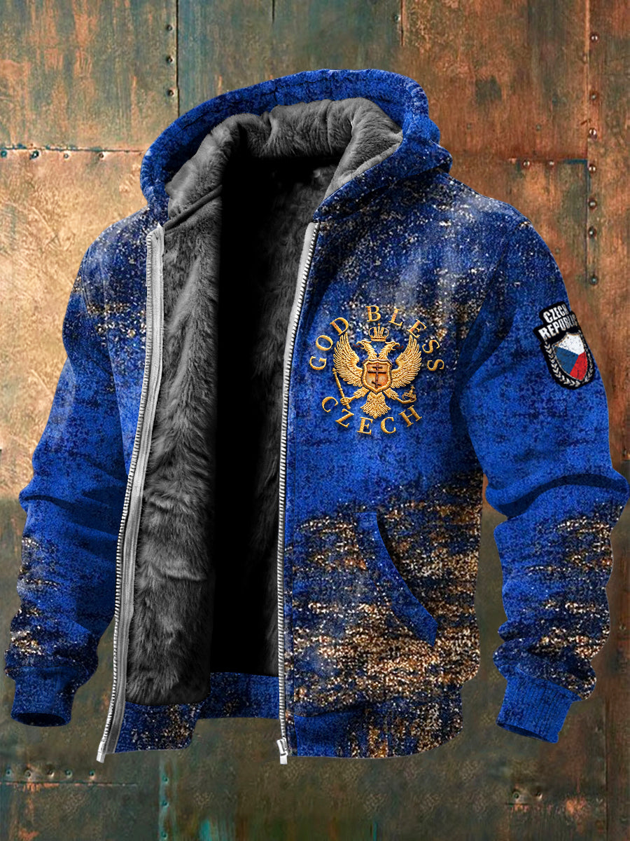 Pánské czech eagle print klein blue fleecelined jacket