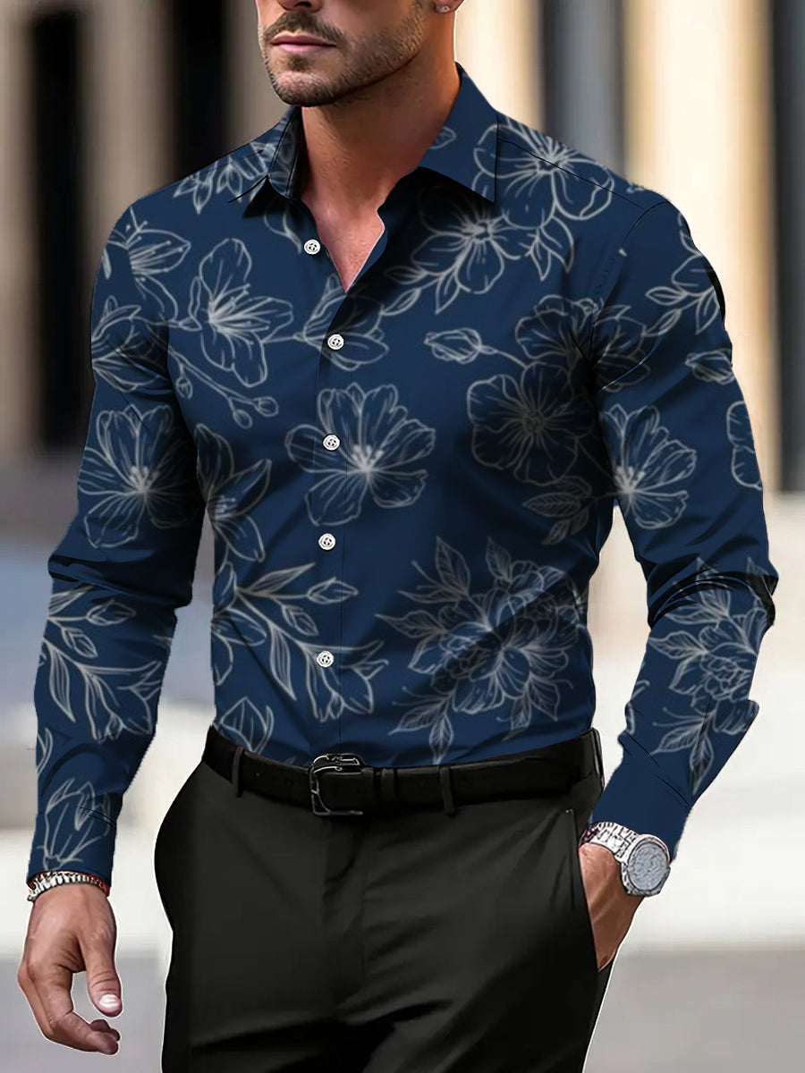 Pánské inteligentní námořnictvo květinové tisk šaty košile