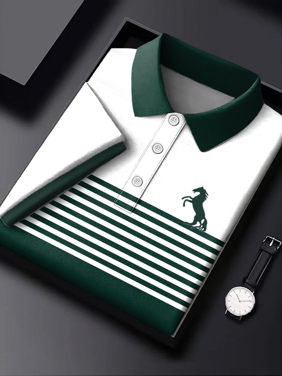 Pánské módy příležitostné obchodní zelené pruhované polo košile