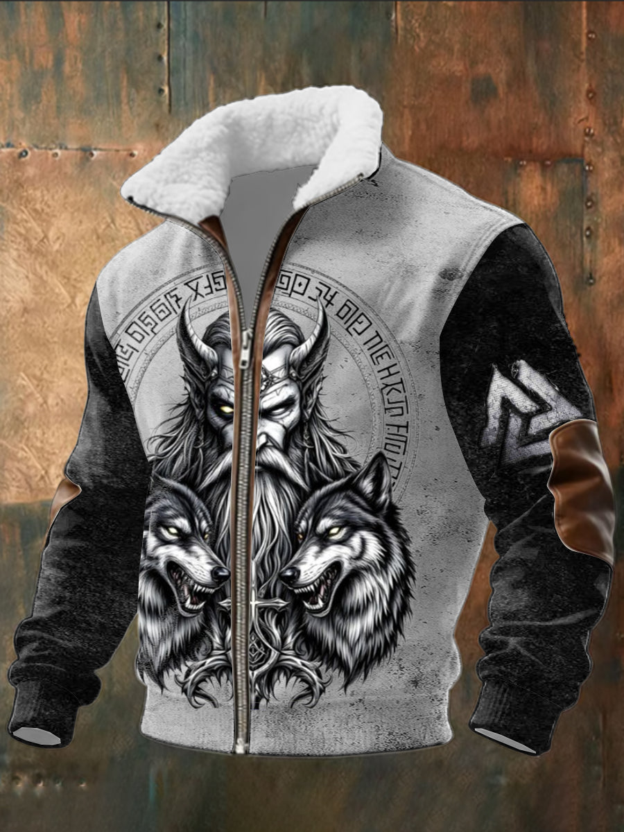 Pánské odvážné norské bůh a dvojčata vlci tisk sherpa golier bunda