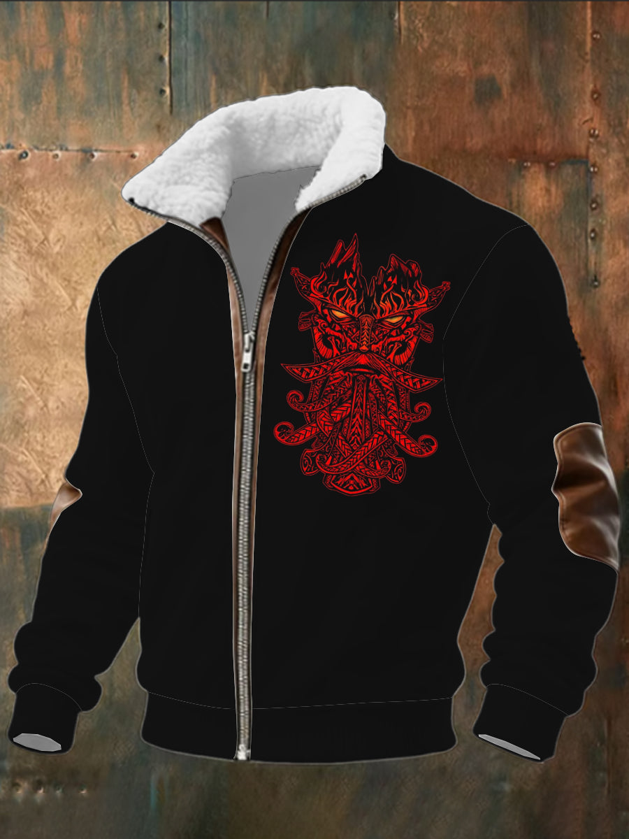 Pánské ohnivé norské bohu tisk sherpalemovaný zip bunda