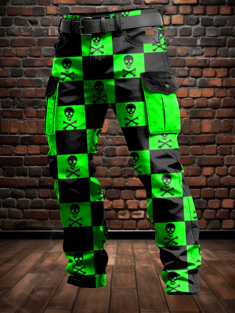 Pánské retro dovolená podnikání lebka umění tisk příležitostné pracovní šaty kalhoty
