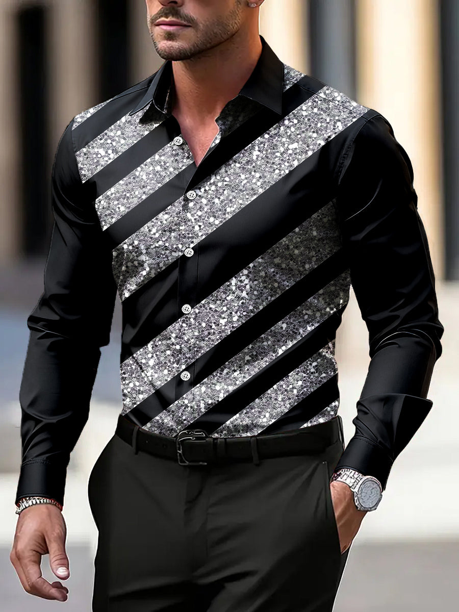 Pánské retro lesklé pruhované každodenní obchodní košile