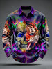 Pánské retro punk psychedelické lebky vytištěné s dlouhými rukávy kapesní košile