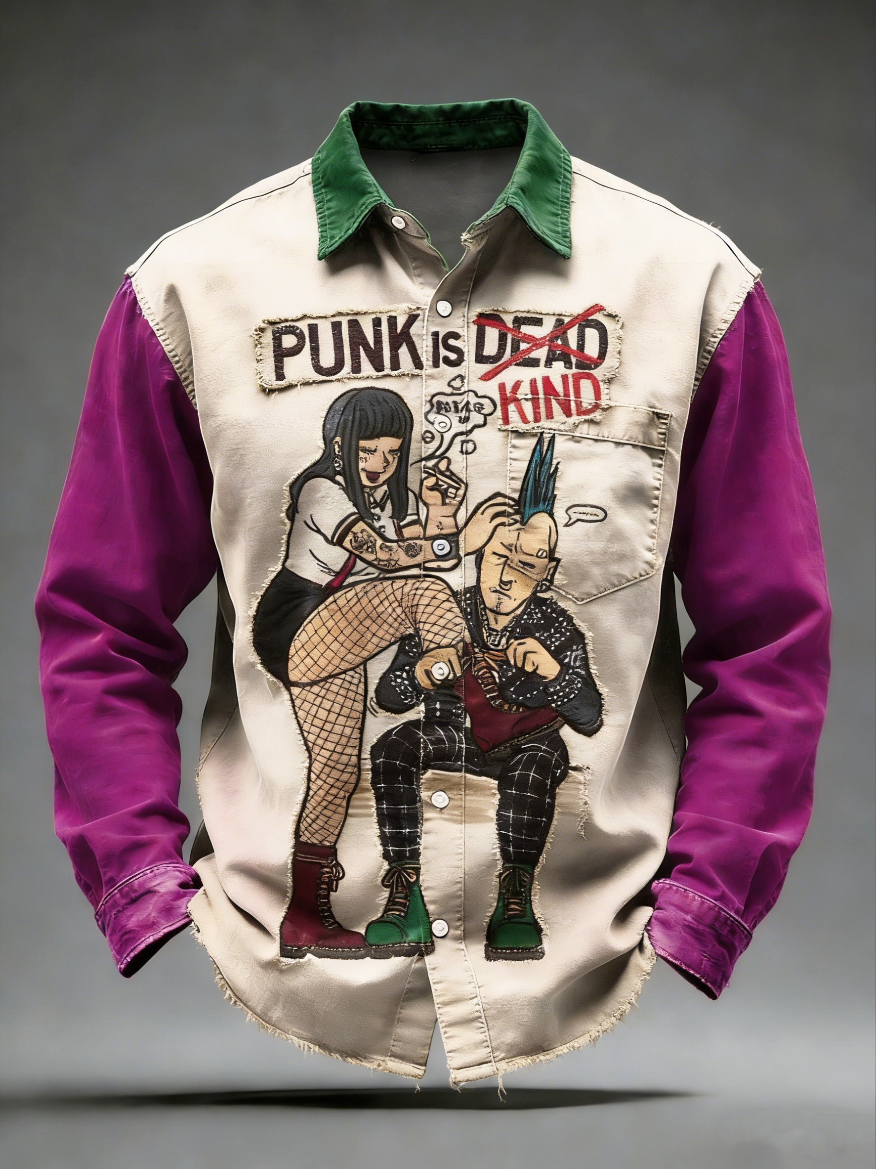 Pánské retro punkové tištěné dlouhými rukávy kapesní košile