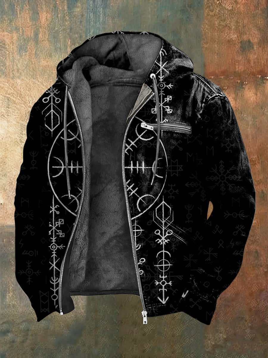 Pánské složité norské runy vzor fleecelemovaný zip bunda