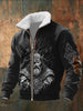 Pánské složité viking warrior & raven print sherpa collar jacket
