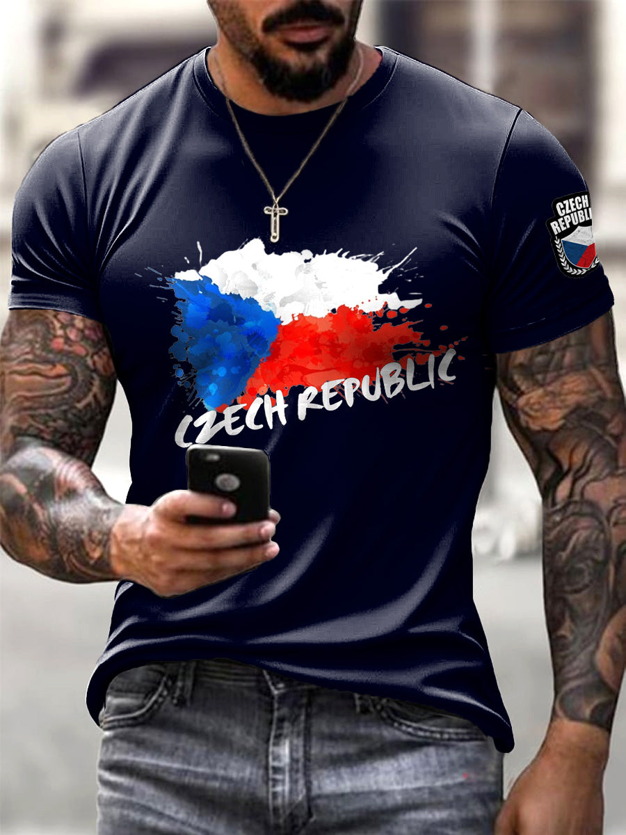 Pánské tmavě modré české vlajky graffiti tričko
