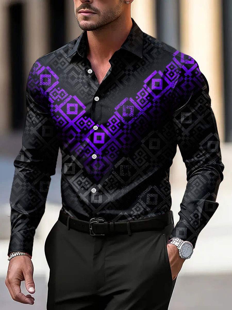 Pánské vintage abstraktní geometrický vzor s dlouhým rukávem košile