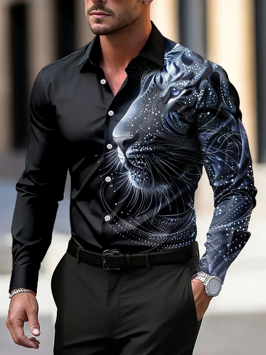 Pánské vintage abstraktní tygří tigru tisk příležitostné obchodní košile