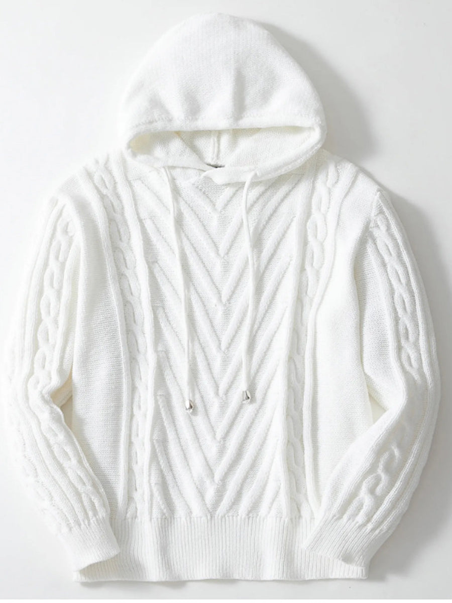 Pánské vintage dlouhý rukáv s kapucinou pletený svetr