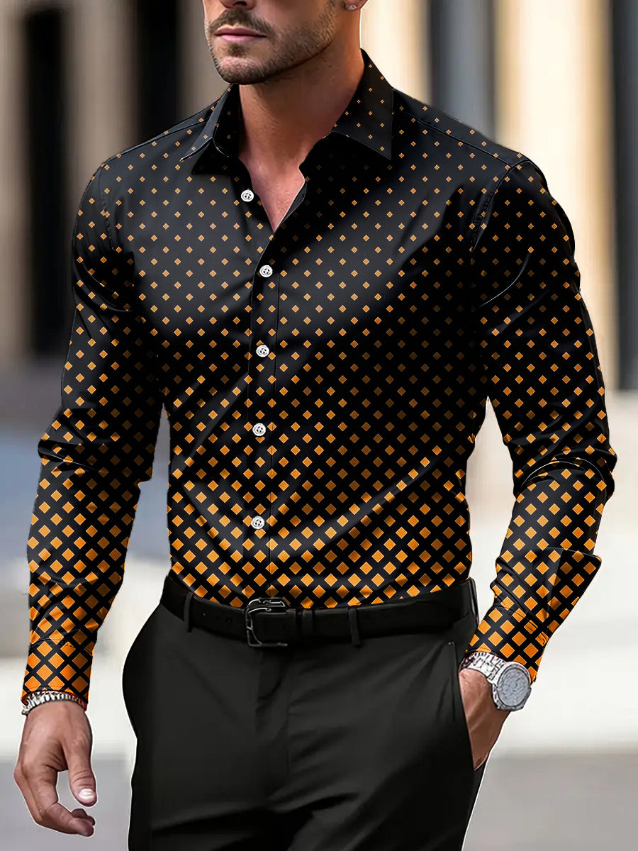 Pánské vintage gradient geometrické podnikání s dlouhým rukávem košile