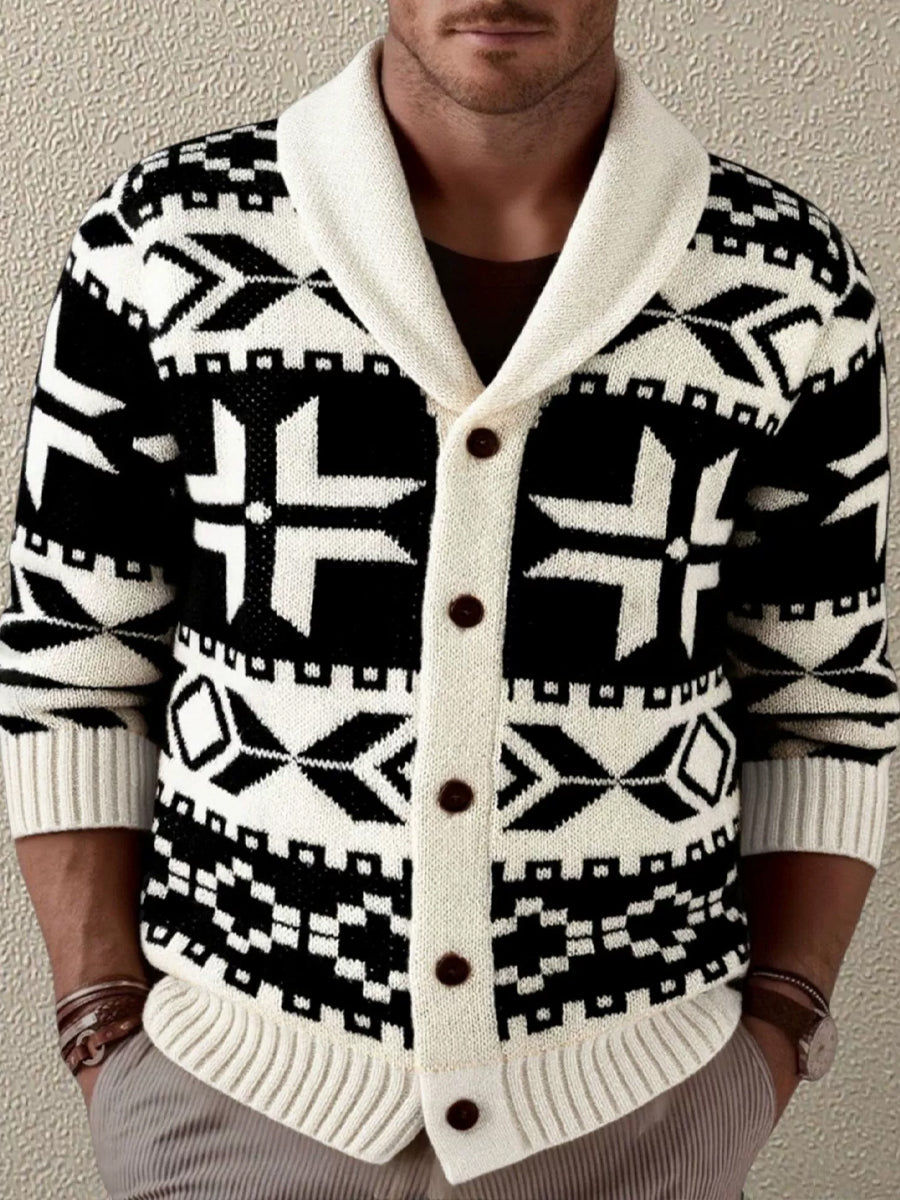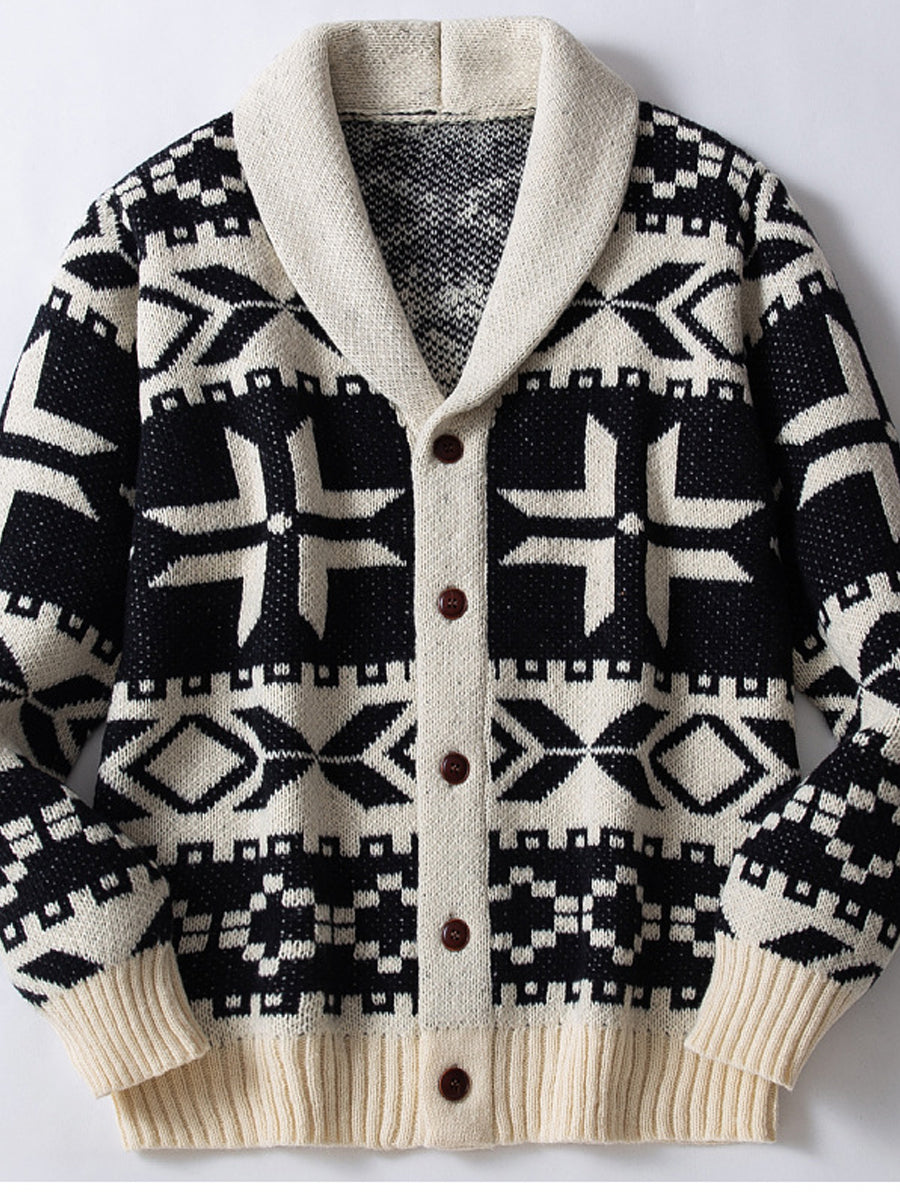 Pánské vintage heavyduty jacquard collared pletená bunda