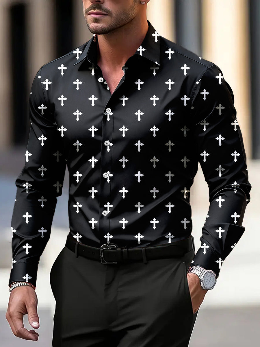 Pánské vintage klasický křížový vzor každodenní obchodní košile