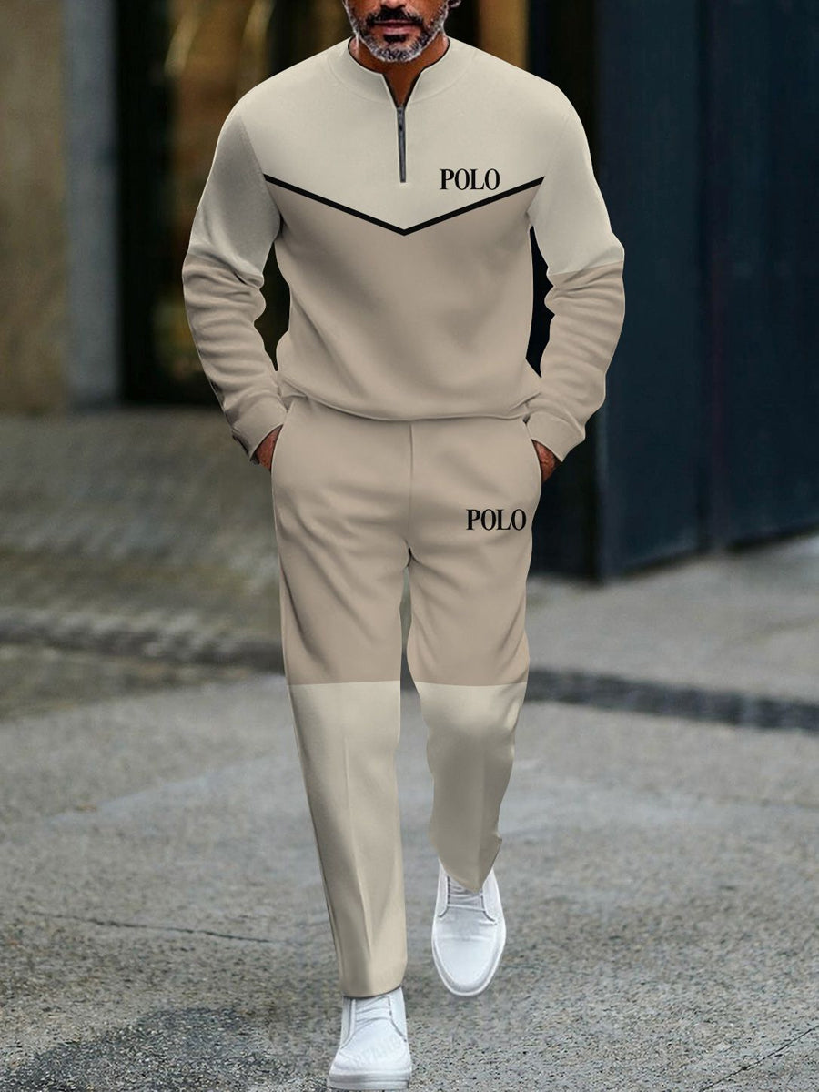 Pánské vintage minimalistický polo dlouhé kalhoty dvoudílná sada