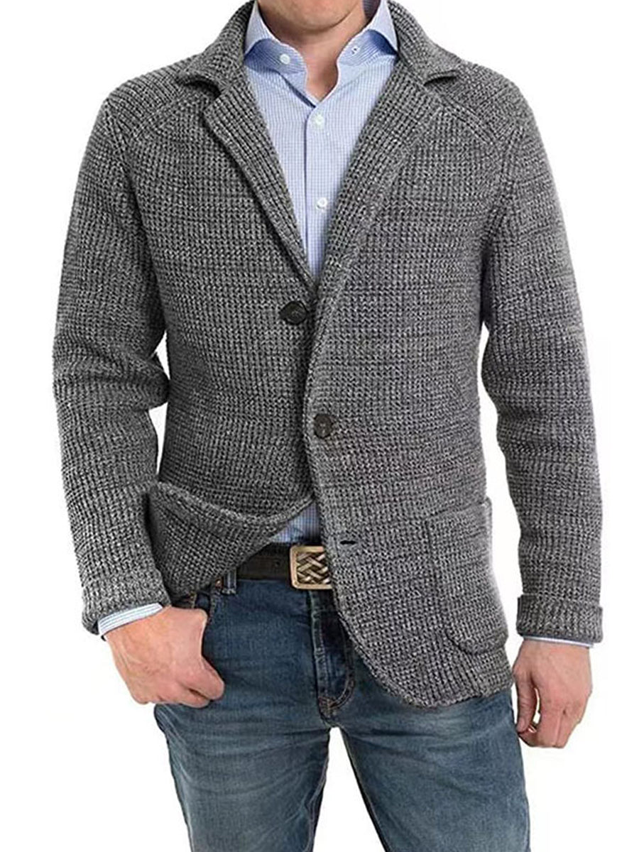 Pánské vintage oblek golier dlouhý rukáv vrecek pletené bundy