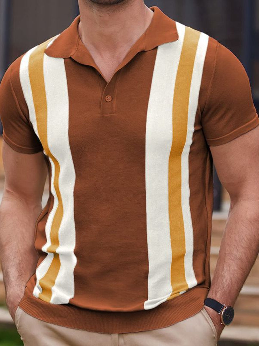 Pánské vintage pruhované kontrastní barevné pletené pólo