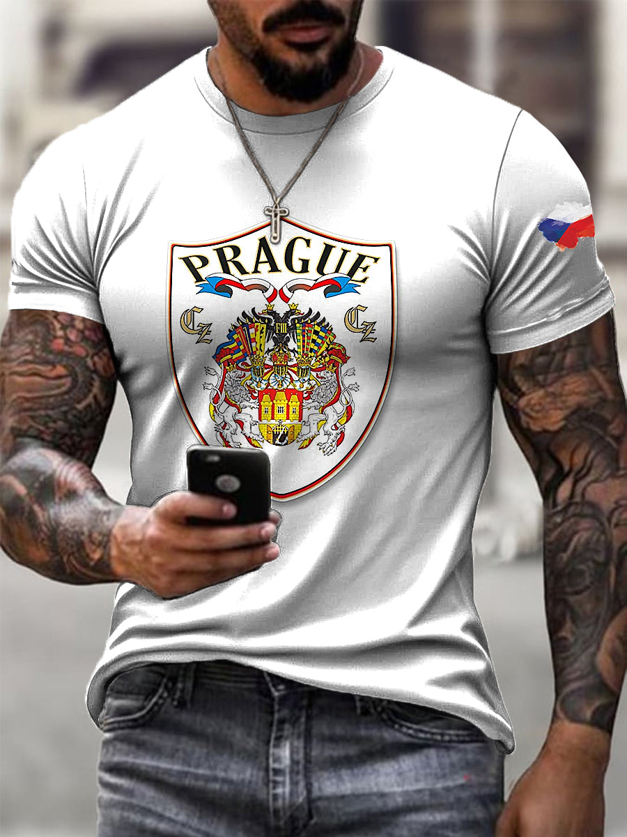 Pánské Vintage Tričko s Uměním Nového Města Prahy