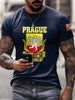 Pánské vintage vlajka prahy emblém umění příležitostné tričko
