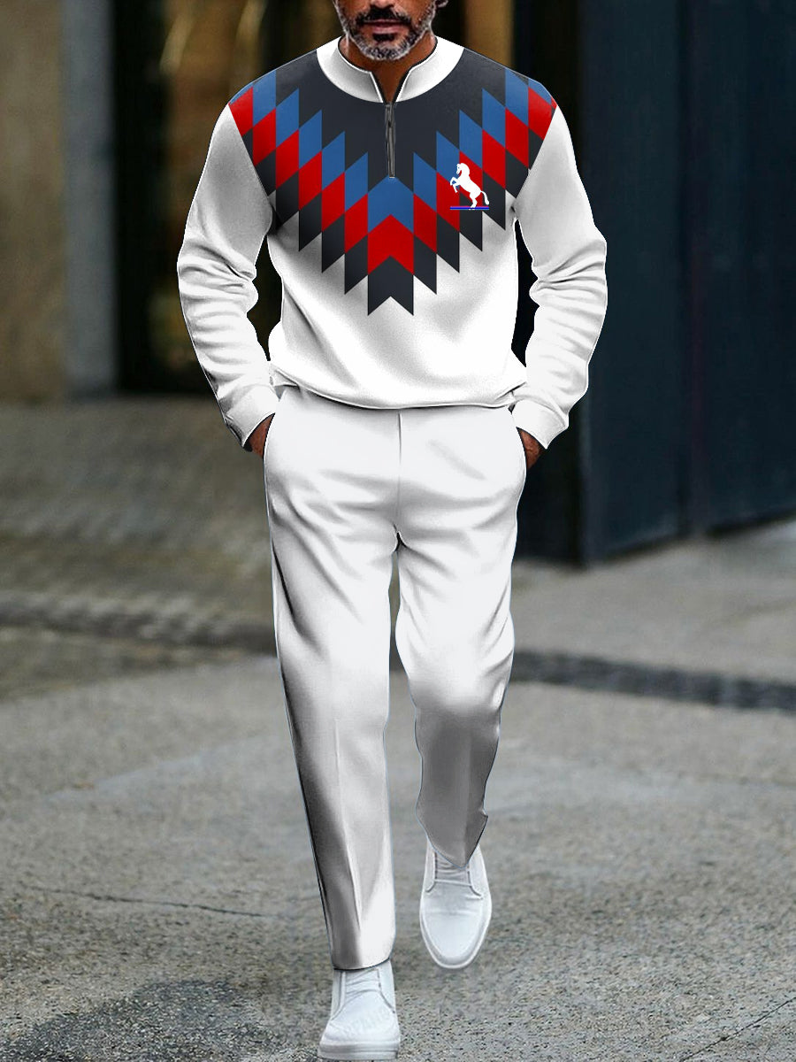 Pánský minimalistický vintageinspirovaný barevný geometrický obchodní oblek