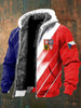Retro abstract line flag emblem casual fleecelined with hooded jacket