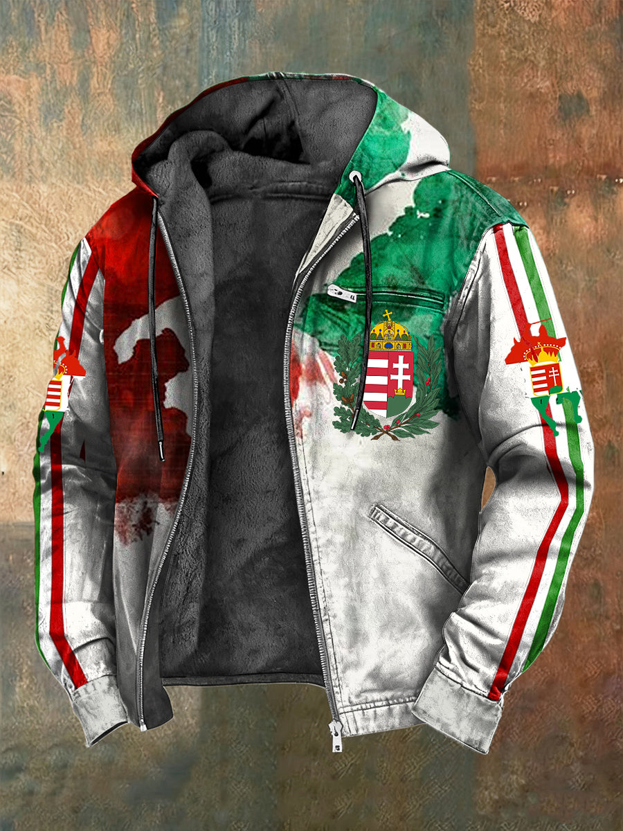 Retro abstraktní magyar vlajka fleecelemované kabát s kapucinou