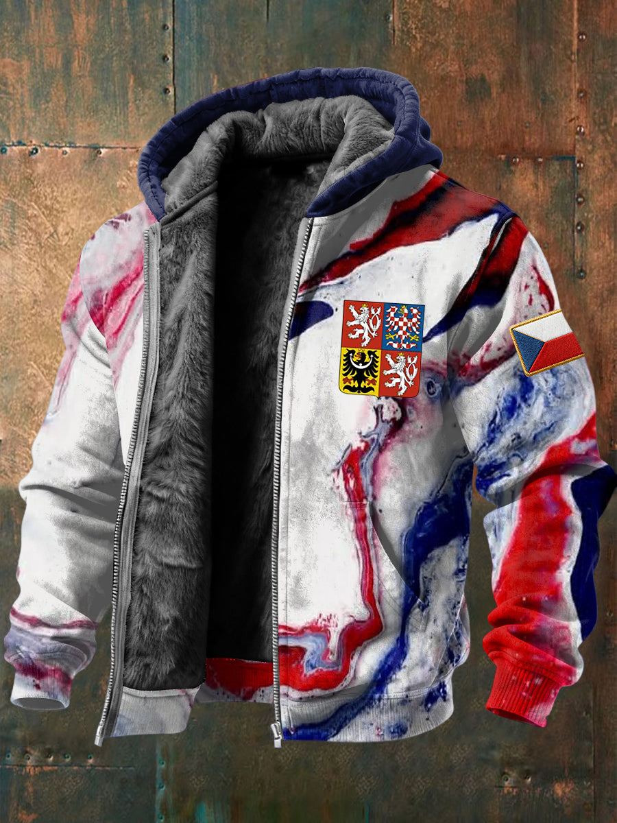 Retro abstraktní textura česká odznak fleecelemovaná bunda s kapucinou