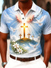 Retro faiththemed art print casual polo shirt