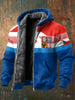 Retro geometric patchwork czech badge fleecelined hooded jacket