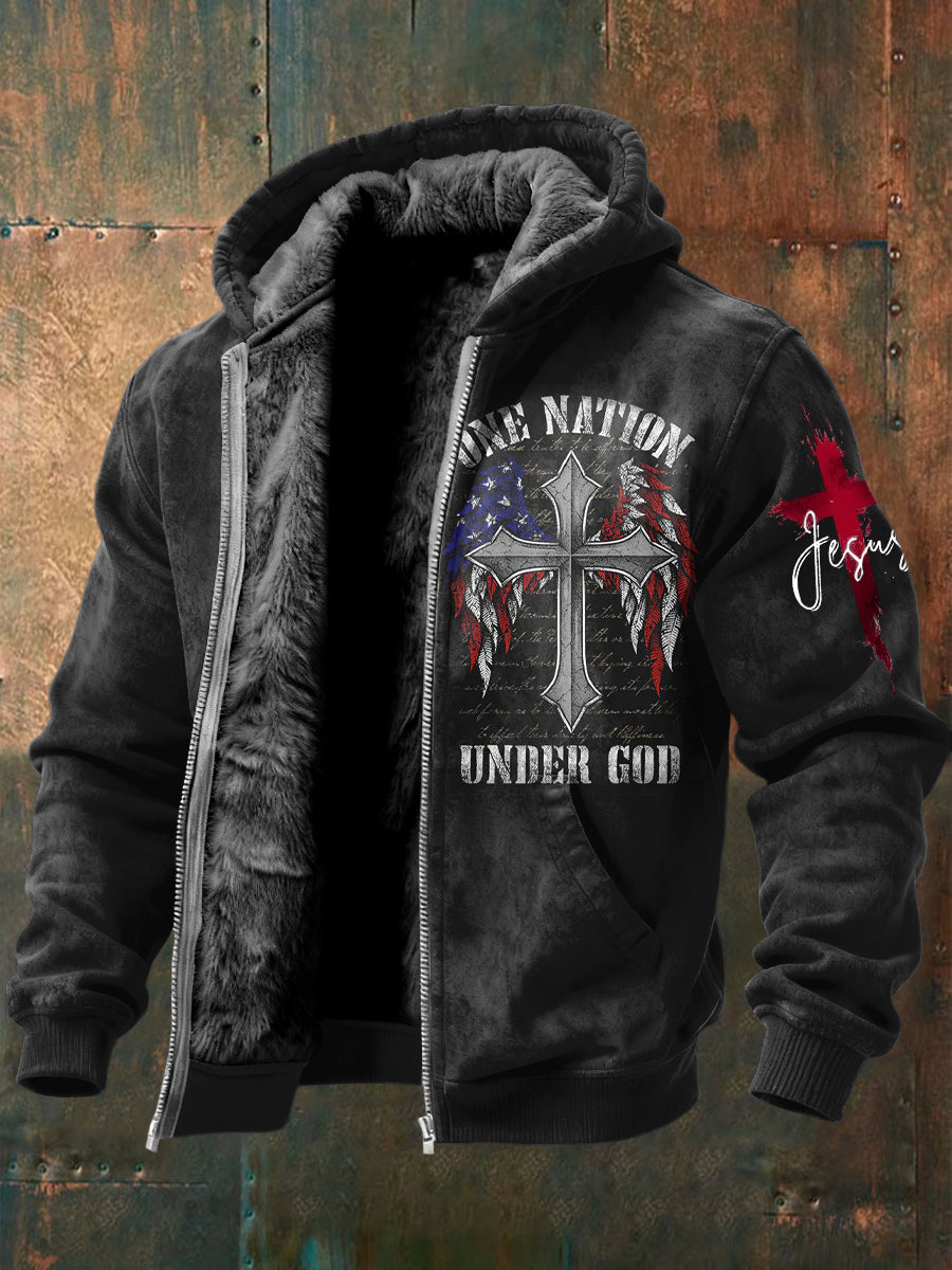 Retro křížový křížek neformální fleecelemovaný kabát s kapucinákem