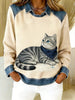Retro roztomilý zvířecí šálek cat denim patchwork art tištěné casual volné dlouhé rukávy klopa mikina