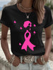 Women's breast cancer ribbon style black casual short sleeve