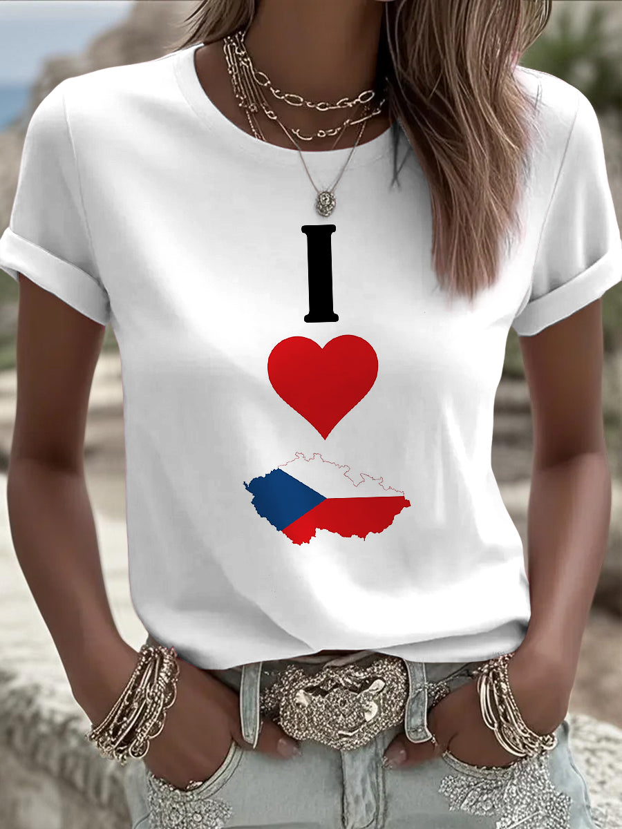 Women's vintage flag map print casual t-shirt