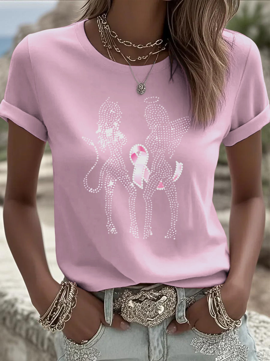 Žena diamant anděl ďábel obrázek růžová stuha vyšívaná světle růžová neformální krátký rukáv