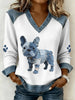 Ženské francouzské buldog vzor džínsové patchwork umění v krku top